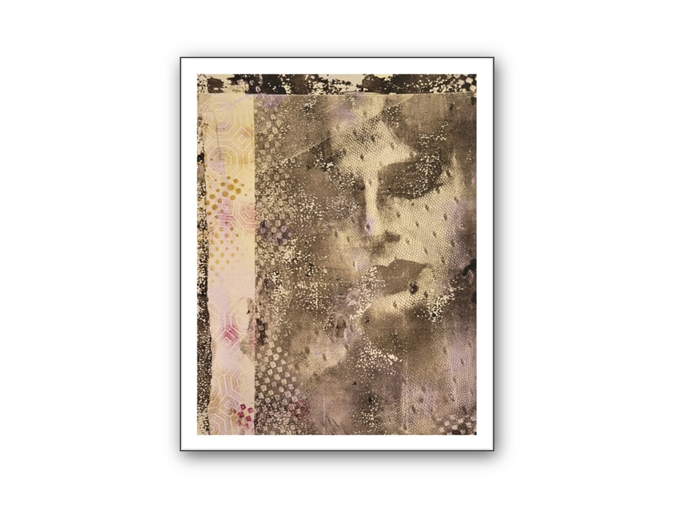 Hunt for images in glossy magazines is mostly driven by their contemporary appeal, stereotypes enforced by advertising, fashion, design. Gel plate turns them into essentially monochromatic prints, faded, specled, grainy, aged, emphasized by weak, parchment-like background colors and impromptu imprints of stamps, creating an unusual, abstract or symbolic environments they exist in. Traveling back in time and forward in emotional depth and image-telling stories of life.